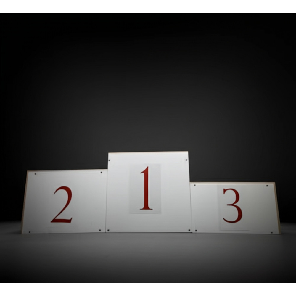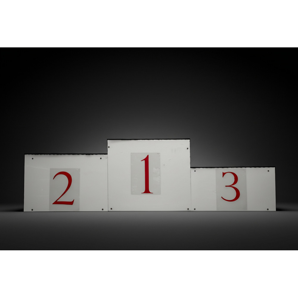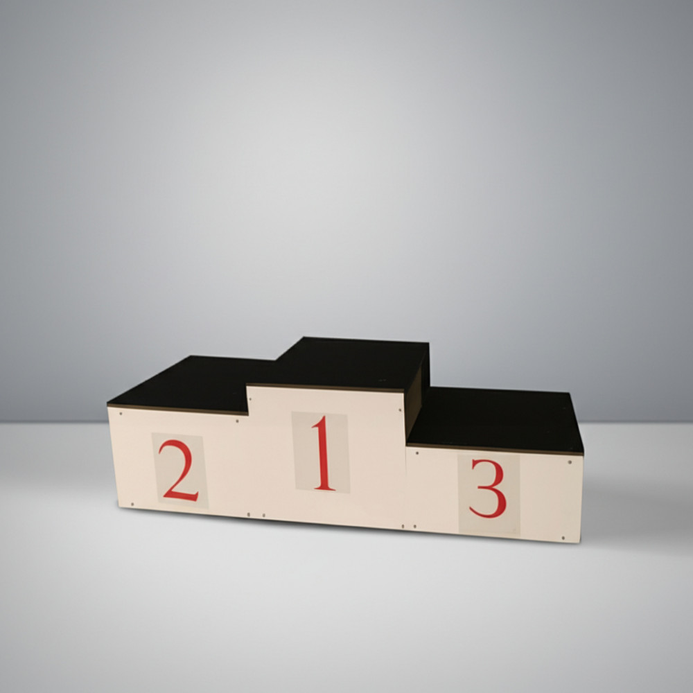 - Эстетичность: Белый цвет покрытия с табличками для цифр делает пьедестал привлекательным на любых мероприятиях.