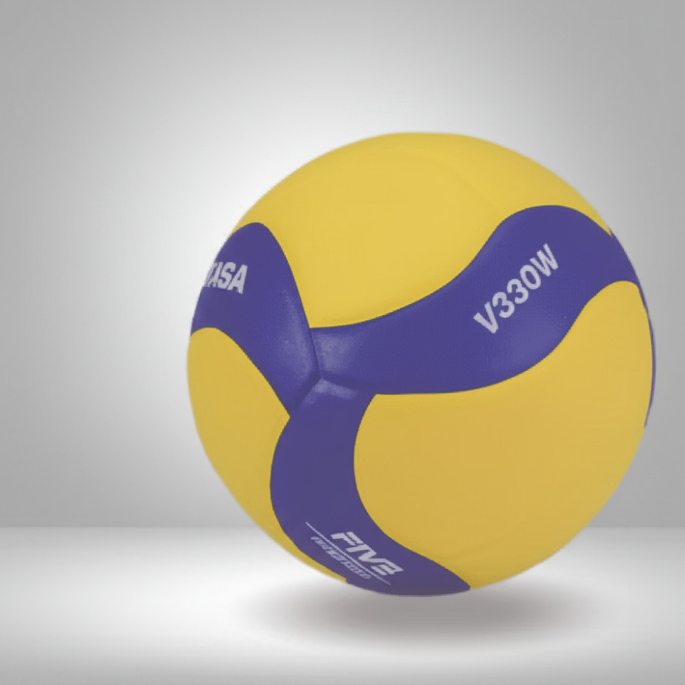 Мяч волейбольный Mikasa V330W FIVB - официальный тренировочный мяч, предназначенный для игры на уровне профессионального волейбола; размер 5, вес 260-280 г, желто-синий цвет.