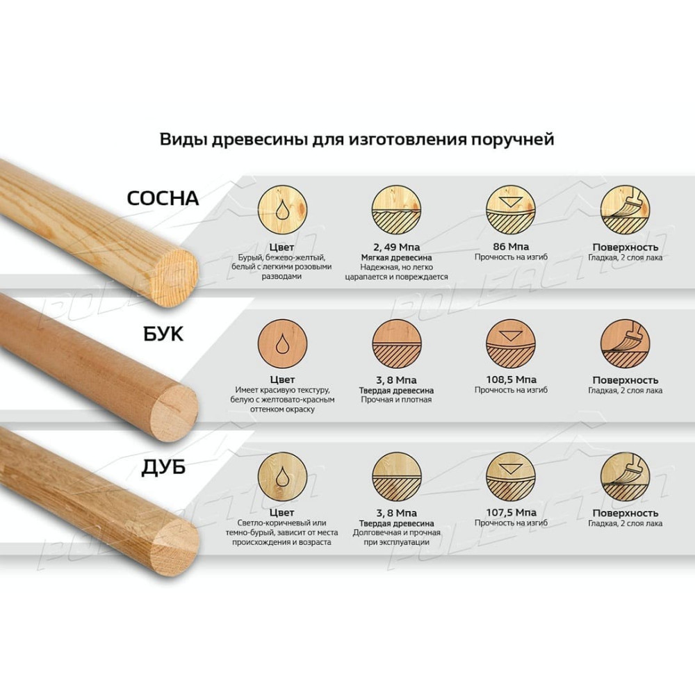Данный поручень представляет собой изделие, выполненное из натурального дуба. Состоит из склеенных и срощенных ламелей, что обеспечивает ему высокую прочность и долговечность. Дуб является одним из наиболее востребованных материалов благодаря своим эстетическим и техническим характеристикам.
