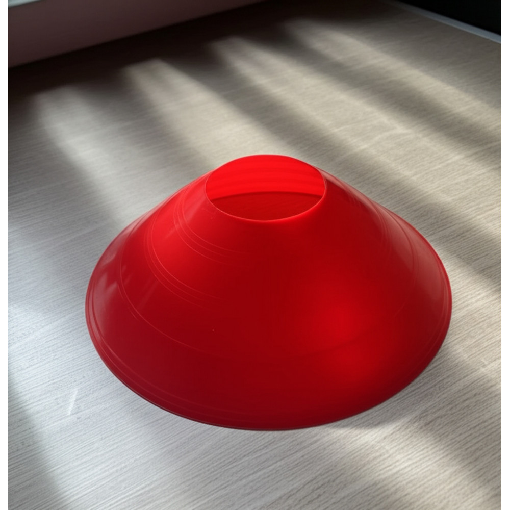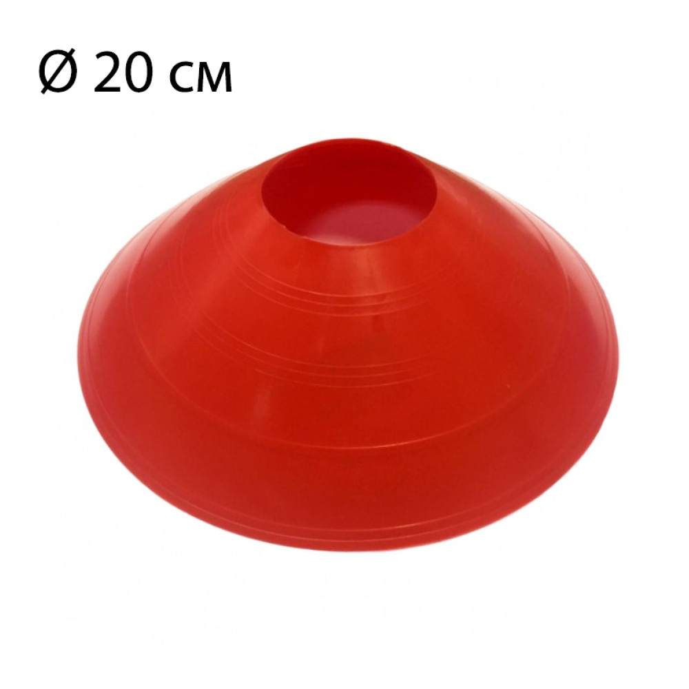 Красный разметочный конус (диаметр 20 см) предназначен для тренировки скорости и координации спортсменов.