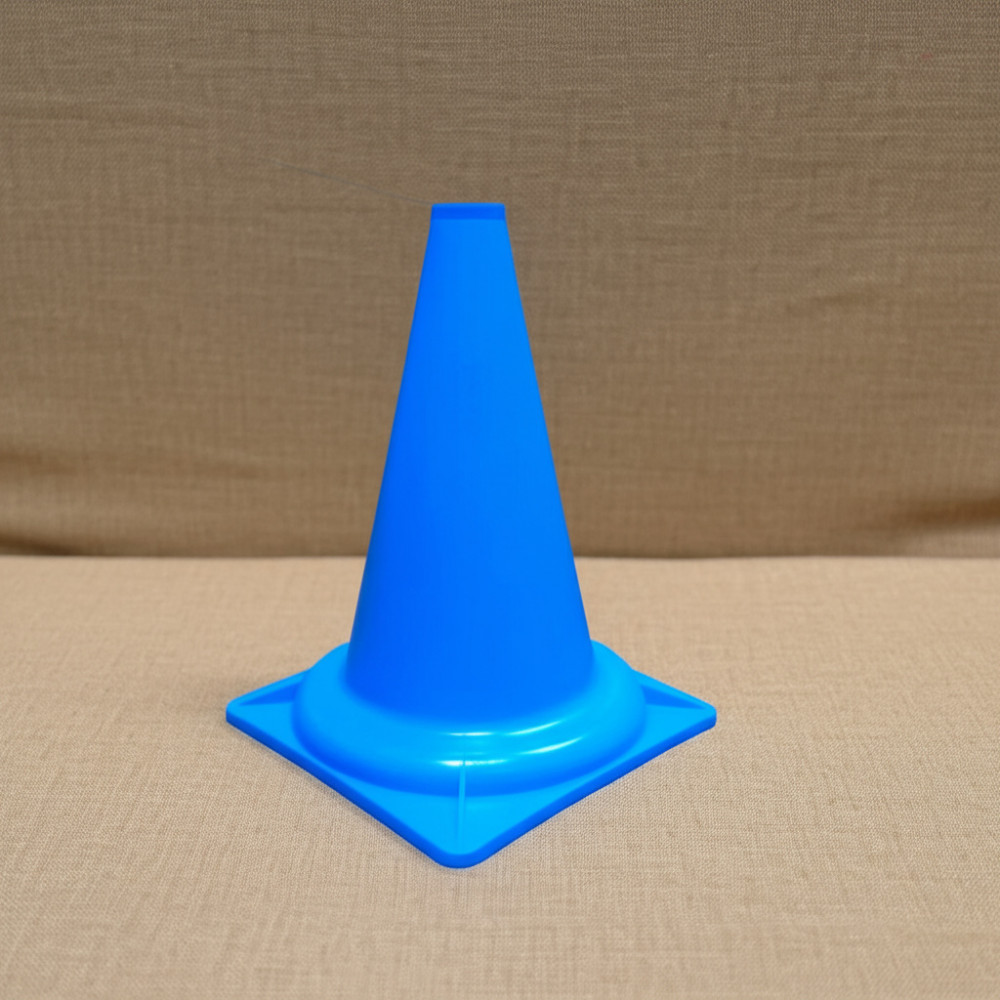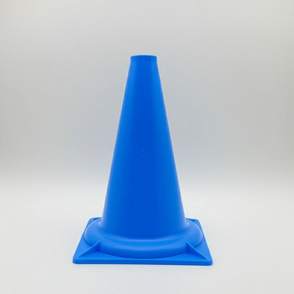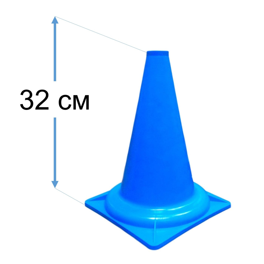Пластиковый твёрдый конус синего цвета, высотой 32 см, идеально подходит для тренировки и разметки пространства на спортивных площадках.