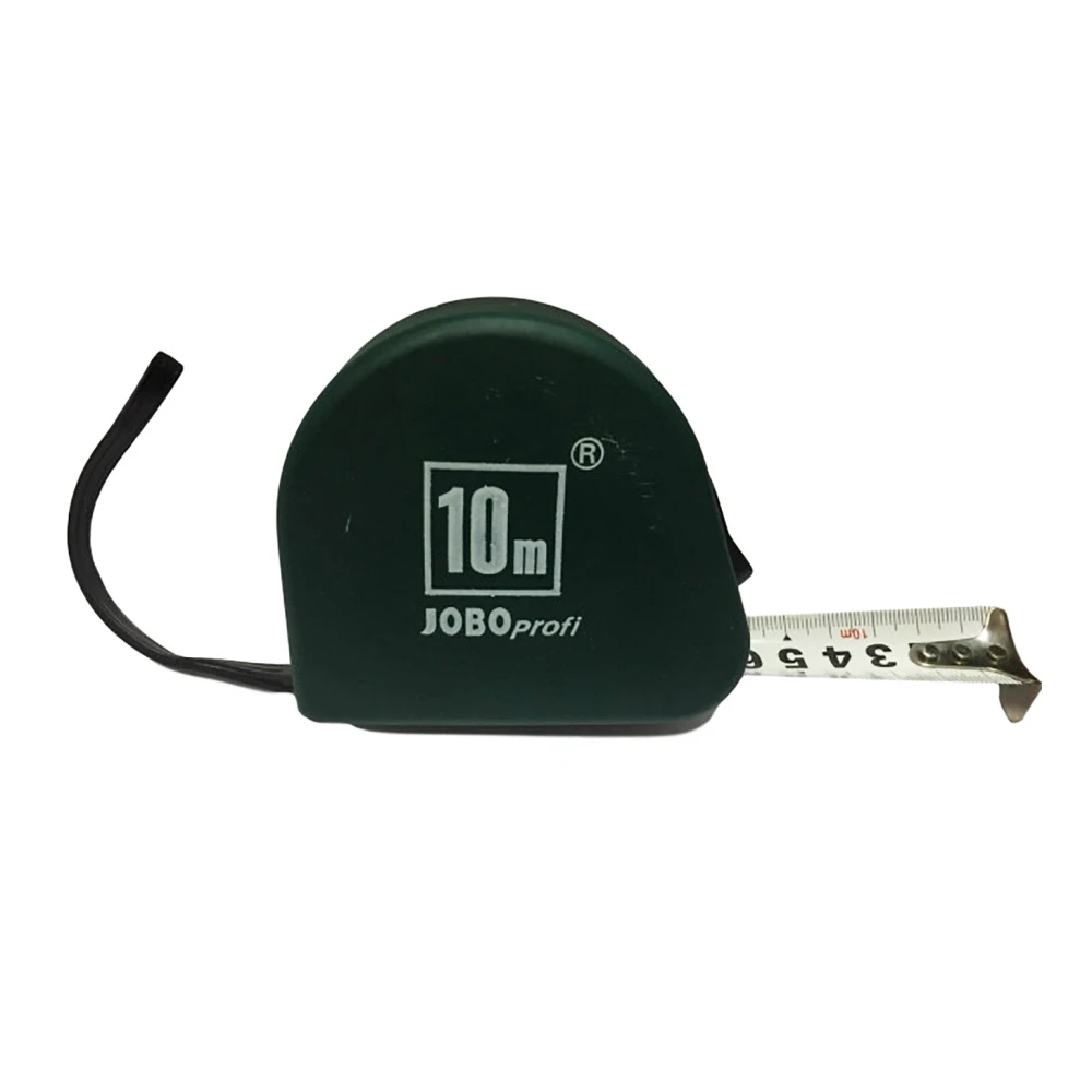 Спортивная рулетка длиной 10 метров, выполненная из пластика и металла, в темно-зеленом цвете, является идеальным инструментом для разметки площадок и измерения дистанций.