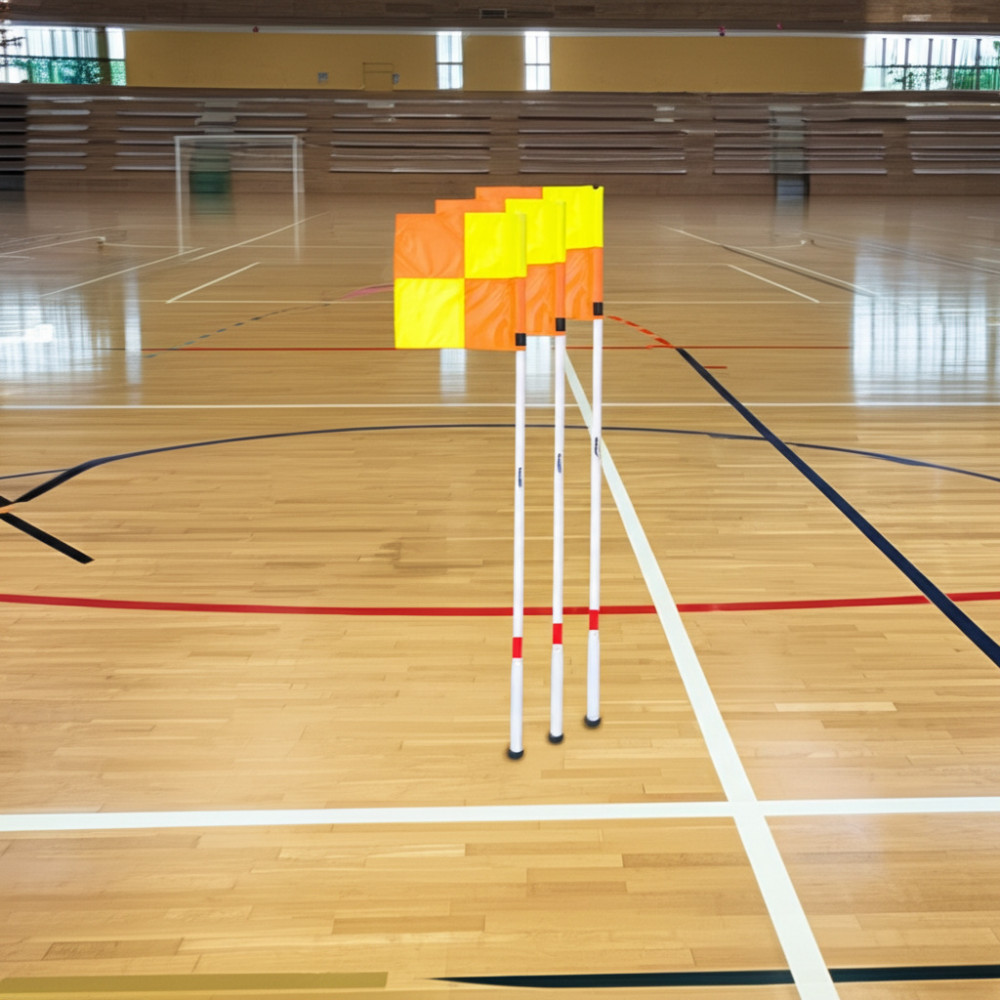 - Яркие цвета: желтый и оранжевый цвета флагов делают их хорошо заметными на поле, что важно для судей и зрителей.