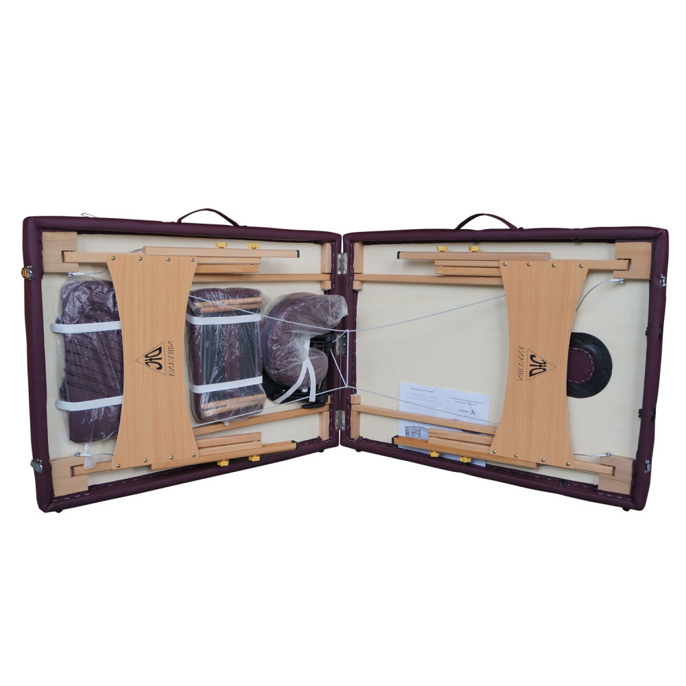 Складной 2-х секционный переносной массажный стол DFC NIRVANA Relax в сливовом цвете, идеально подходит для домашнего использования и отличается высокой нагрузочной способностью до 250 кг.