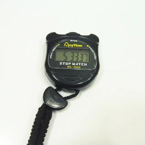 Большой электронный секундомер в пластиковом корпусе с шестизначным одноразрядным дисплеем размером 15×25 мм. Модель XL-010. Имеет дискретность измерений от 1/10 секунды до 24 часов. Поддерживает один этап с памятью на один результат. Дополнительно оснащен функциями часов и будильника. Подходит для использования в спорте, тренировках и повседневной жизни.
