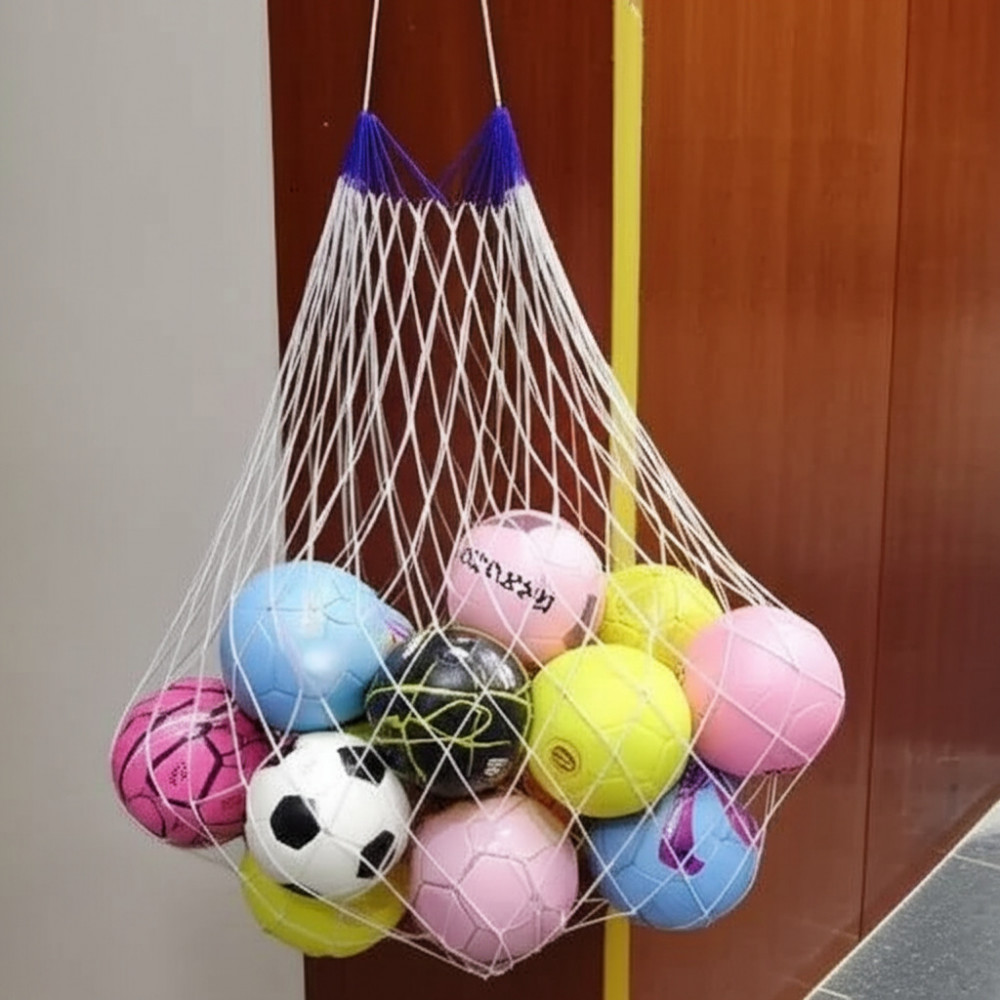 Сетка для мячей предназначена для удобного хранения 25-30 мячей диаметра 5-7 см, идеальна для футбола, волейбола и баскетбола.
