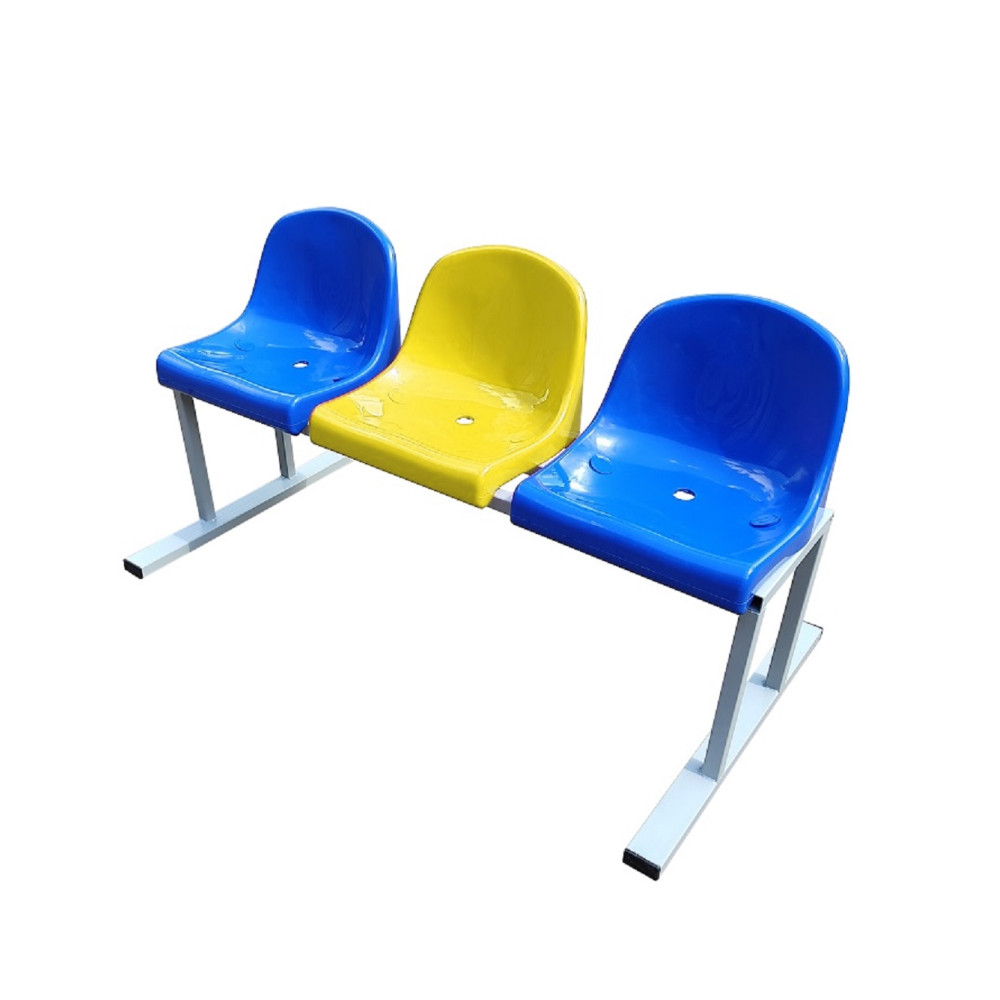 Скамейка для запасных игроков длиной 142 см на 3 места, выполненная в различных цветах с металлическим каркасом из профиля 60х30 мм.