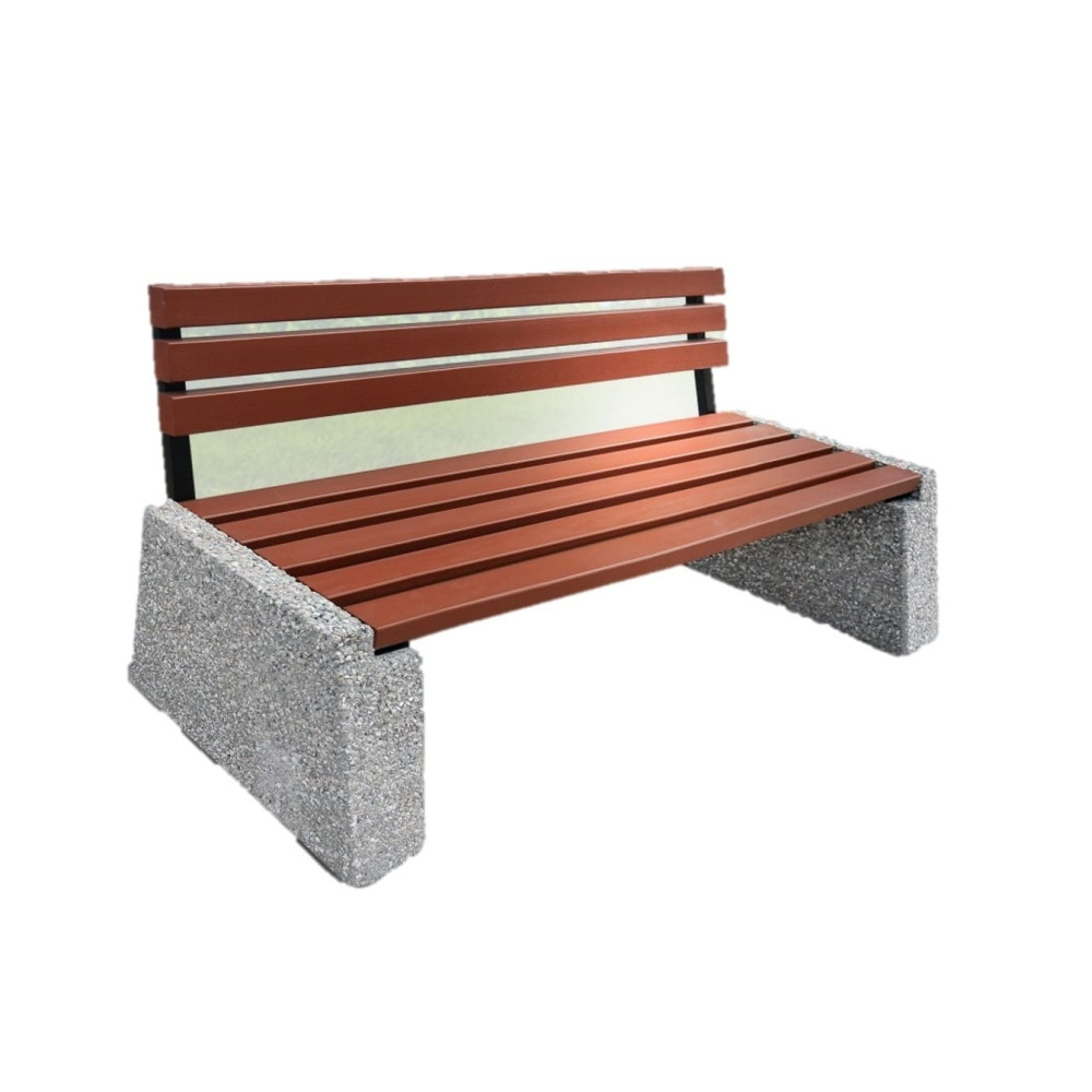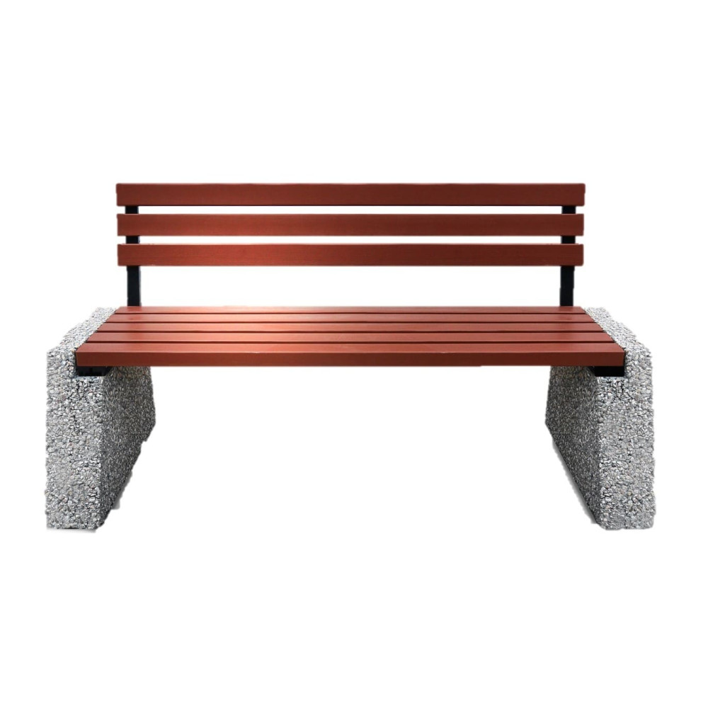 - Скамейка изготовлена из бетонного каркаса и дерева, которое покрыто тонировкой и эмалью в 2 слоя для надежной защиты.