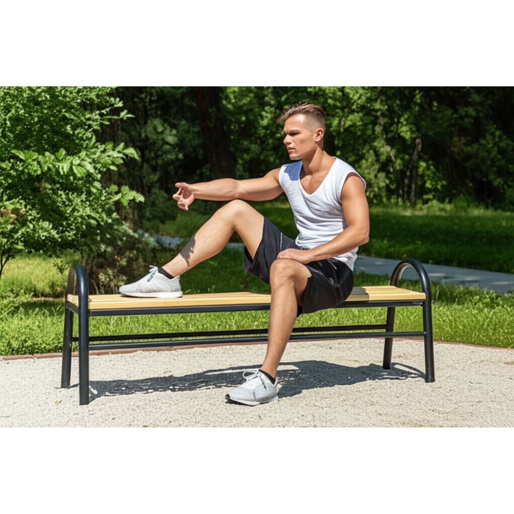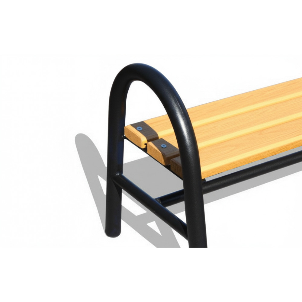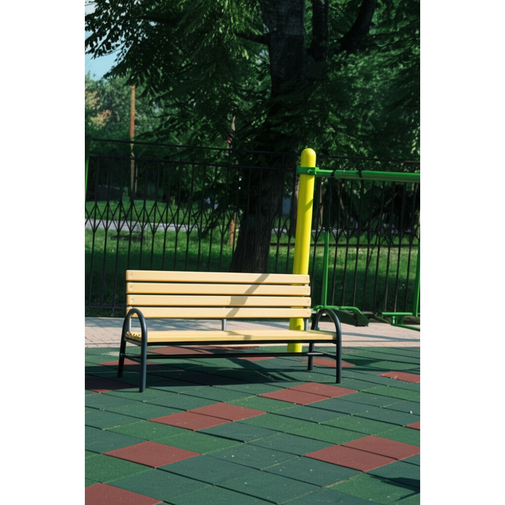 Металлические части скамейки защищены устойчивой порошковой краской с глянцевой поверхностью, что обеспечивает защиту от внешних воздействий. Деревянные элементы обработаны несколькими слоями износостойкого лака, устойчивого к истиранию и действию ультрафиолета, что повышает их срок службы.