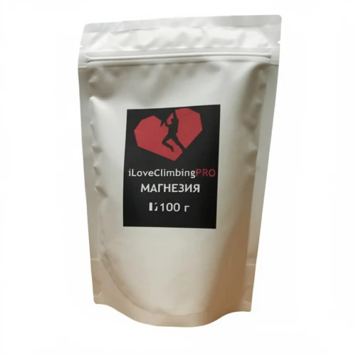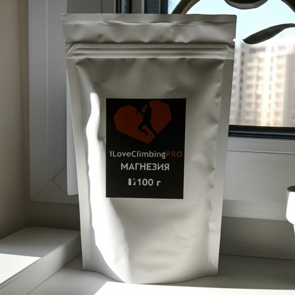 Спортивная магнезия в порошке весом 100 г, предназначенная для атлетических и силовых тренировок, произведена в России.