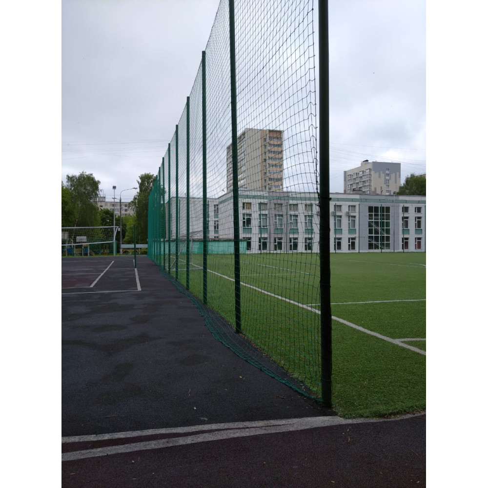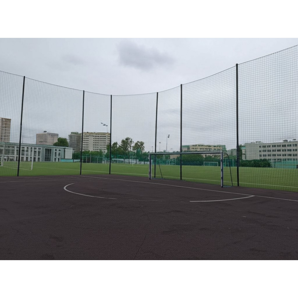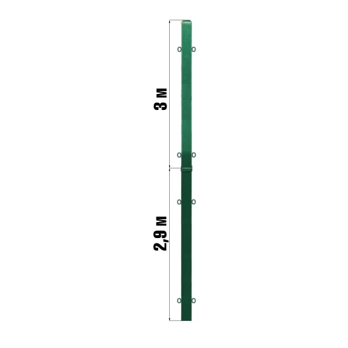 Составной столб ограждения длиной 6 метров с кольцами для крепления сетки, идеально подходит для установки на спортивных площадках.