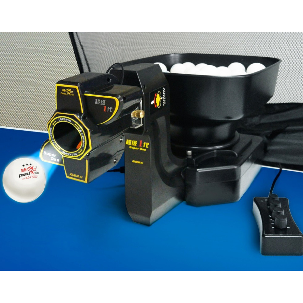 Тренажер для настольного тенниса Double Fish - ТТ-01 оснащен регулировкой угла наклона и направления подачи, скоростью подачи от 4 до 40 м/с, что делает его идеальным для тренировки различных уровней игроков.