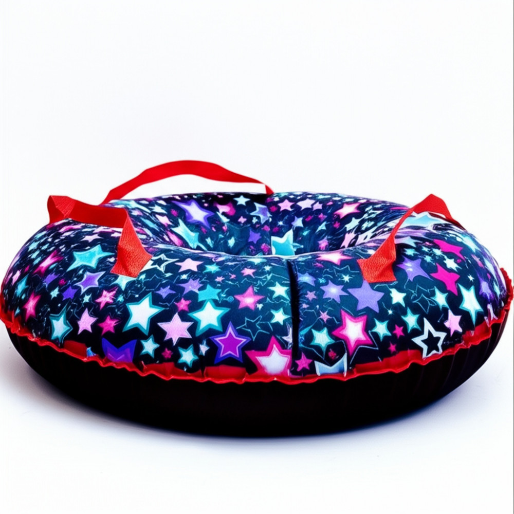 Сноутьюб V76 - яркий и надежный тюбинг с диаметром 75 см, предназначенный для активного зимнего отдыха, выдерживающий нагрузку до 120 кг.
