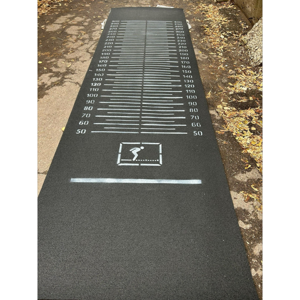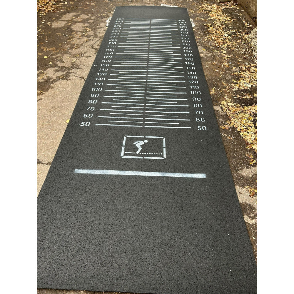 Дорожка отличается толщиной 6 мм, длиной 3700 мм и разметкой каждые 5 сантиметров. Эта разметка позволяет более точно измерять и контролировать результаты, в отличие от моделей с разметкой каждые 10 см.