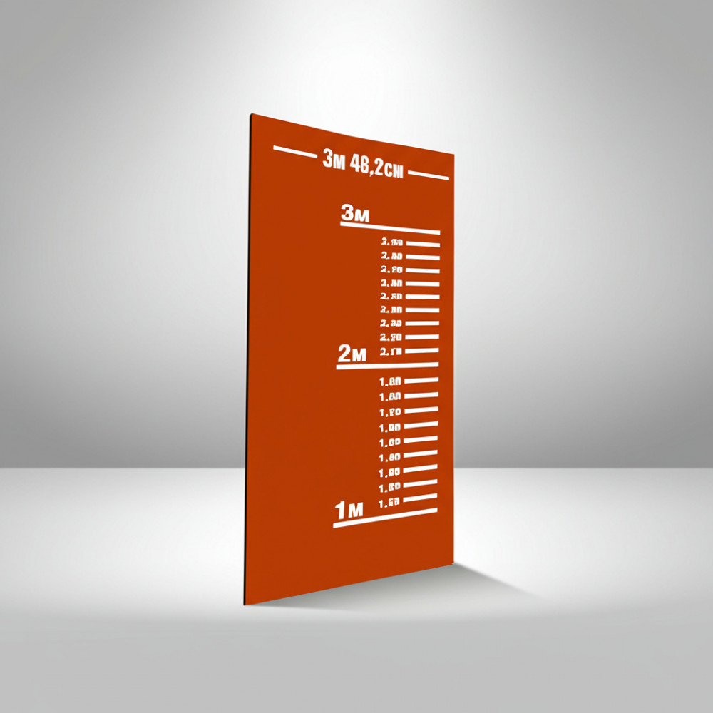 - Разметка от 1 до 3 метров с шагом 10 см нанесена стойкой краской;