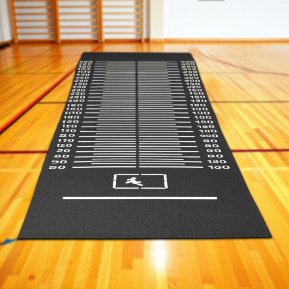 Профессиональная дорожка для прыжков в длину с места. Материал: износостойкий вулканизированный каучук. Размер: 350х125 см. Толщина: 8 мм для улучшенной амортизации. Разметка: 100-300 см с шагом 5 см для точного соответствия нормативам ГТО. Разработана для интенсивного использования в школах, спортивных секциях и центрах тестирования.