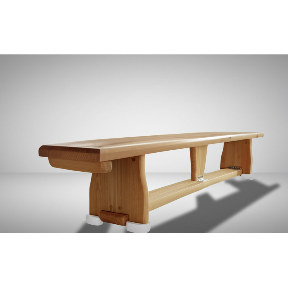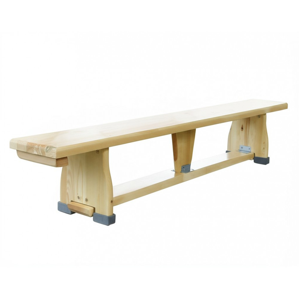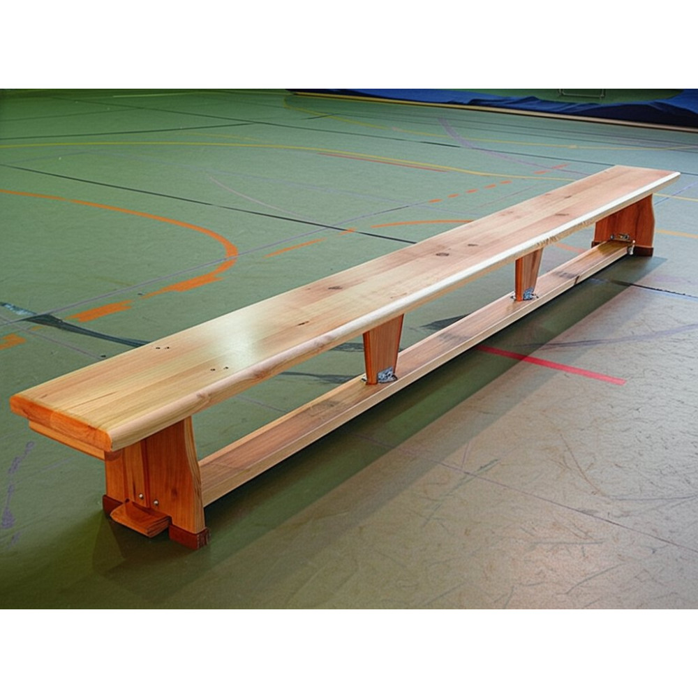 Гимнастическая скамья длиной 4,0 м на деревянных ножках, предназначенная для использования в спортивных залах и образовательных учреждениях.