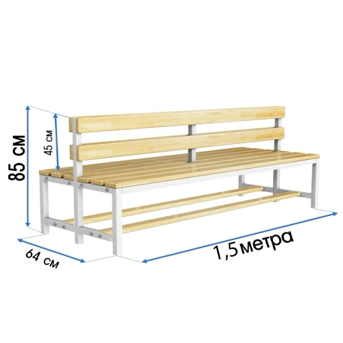 Скамейка для раздевалки двухсторонняя, размеры 850х1500х630 мм, идеально подходит для использования в общественных местах.