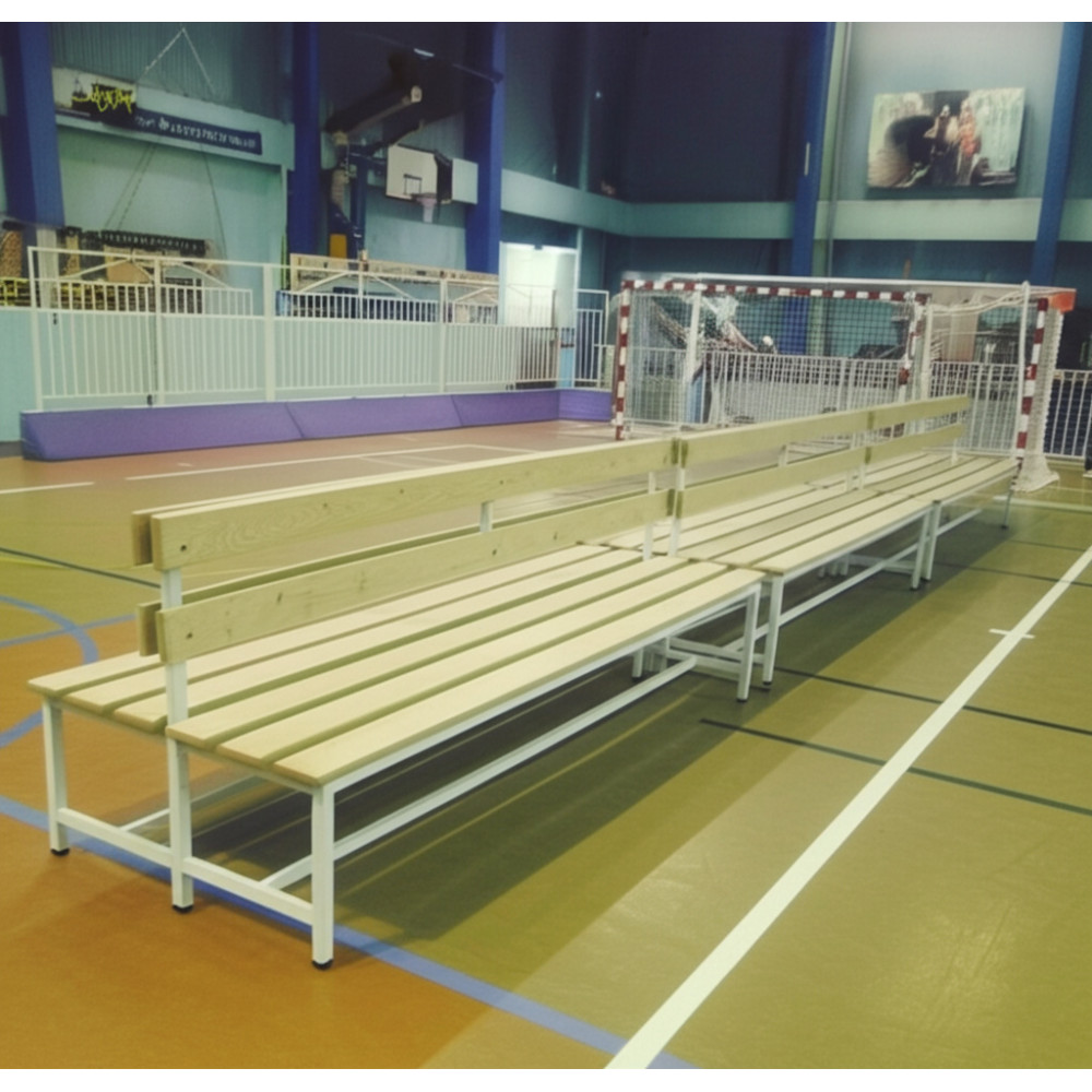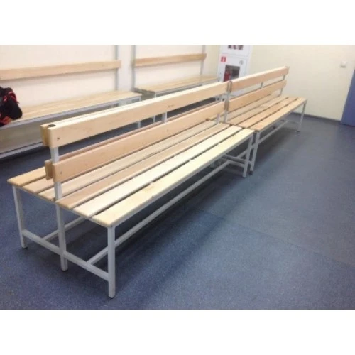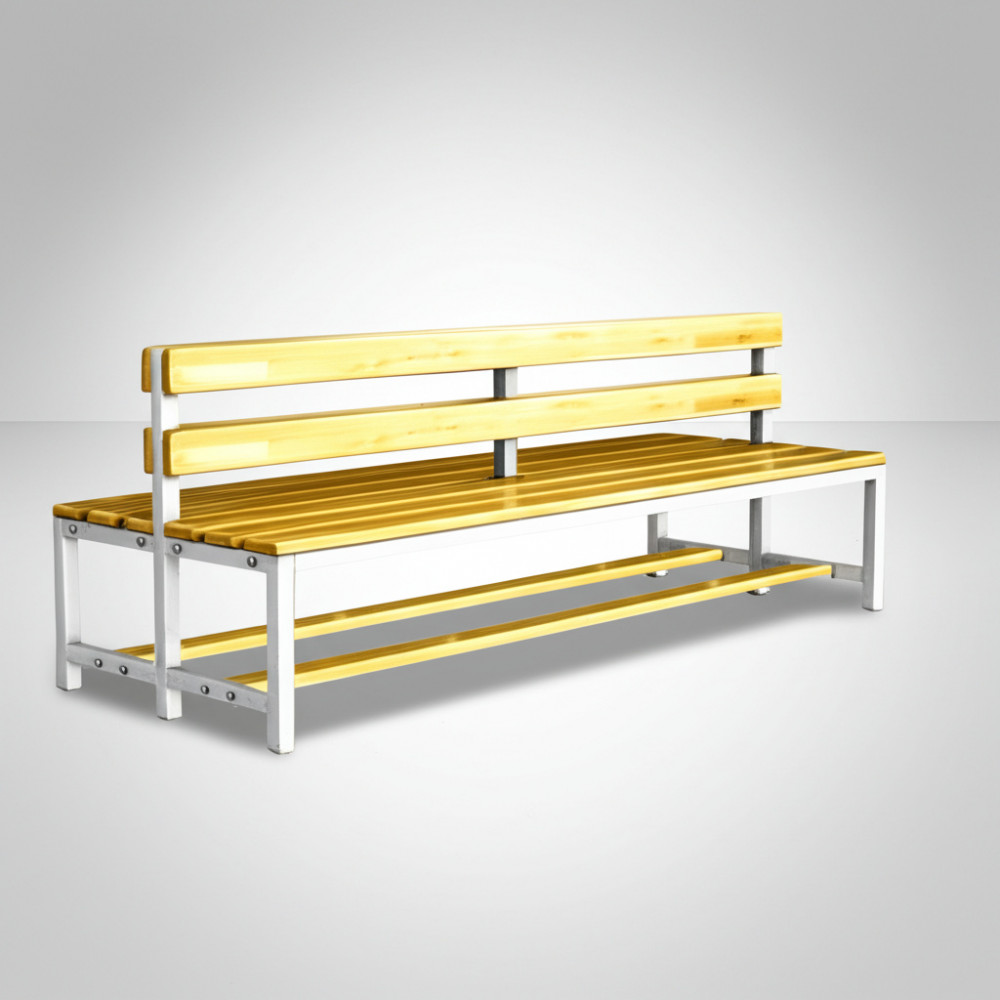 Скамейка для раздевалки двусторонняя размером 850х2000х630 мм, предназначенная для установки в школах, спортивных комплексах и фитнес-центрах.