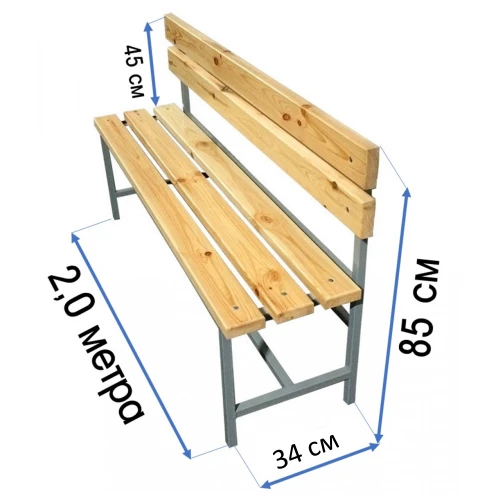 Скамейка со спинкой для раздевалок длиной 2,0 метра - идеальный выбор для спортивных комплексов и образовательных учреждений, обеспечивающий комфорт и функциональность.
