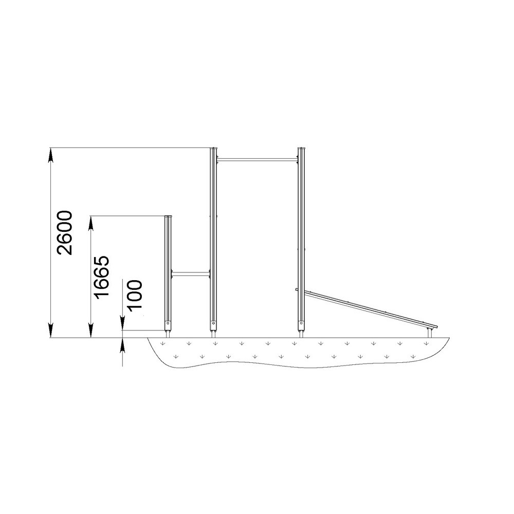 | Материалсосна, фанера влагостойкая, металлическая труба с полимерным покрытием, профильная труба с полимерным покрытием | Допустимая нагрузка на брусья120 кг | Допустимая нагрузка на турник150 кг |