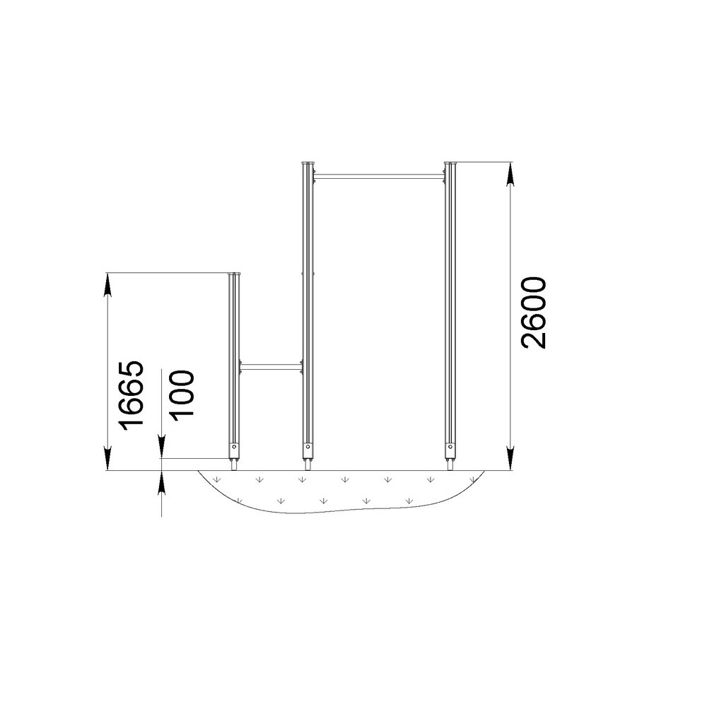 | Материалметаллическая труба с полимерным покрытием, сосна, фанера влагостойкая | Размеры комплекса2,5 м х 1,5 м х 2,0 м | Максимальная нагрузка на брусья120 кг |