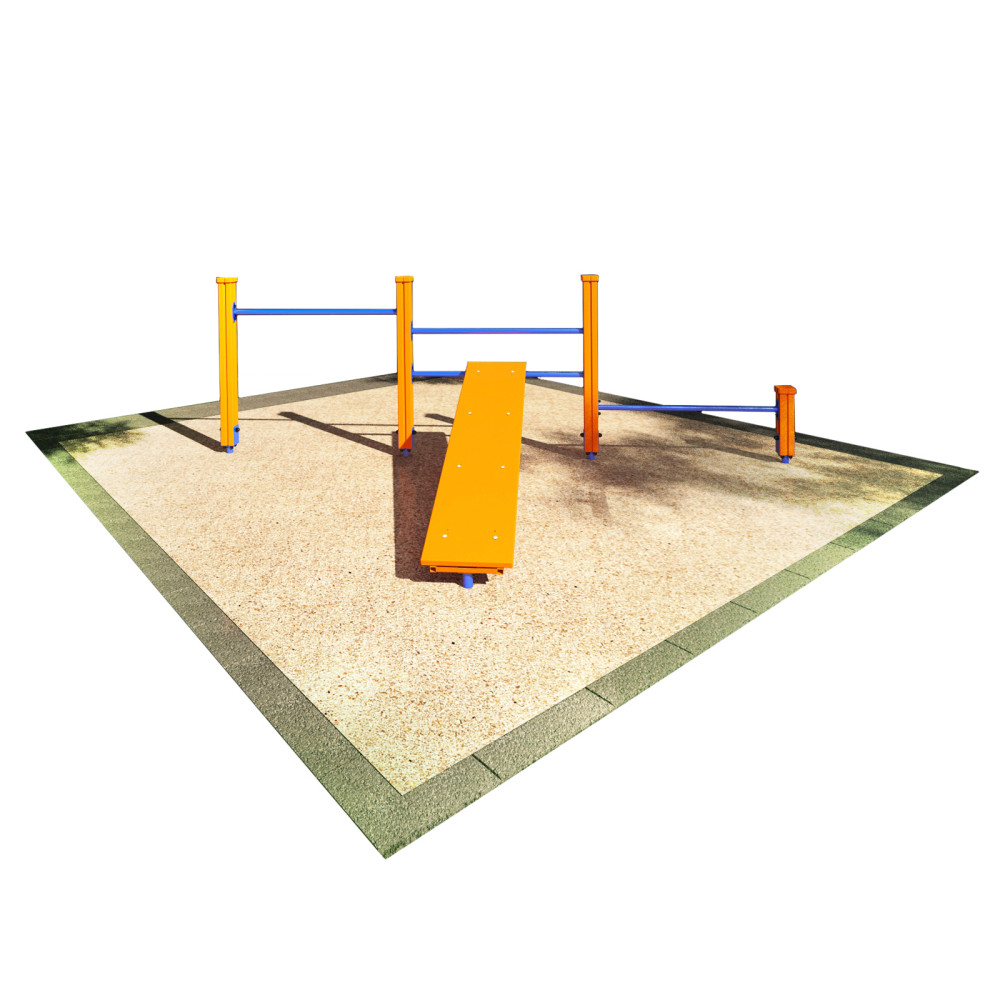Спортивный комплекс № 16 включает в себя наклонную скамью, турник и турник для отжимания, предназначенные для эффективных тренировок основных групп мышц.