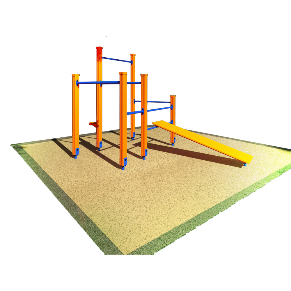 Спортивный комплекс №8 включает наклонную скамью, турники и брусья, предназначенный для разнообразных спортивных упражнений.