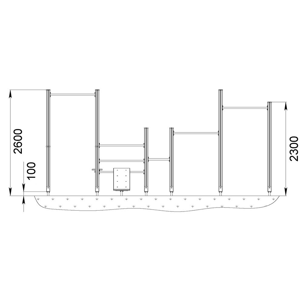 - Четыре турника разной высоты для разнообразных уровней тренировки