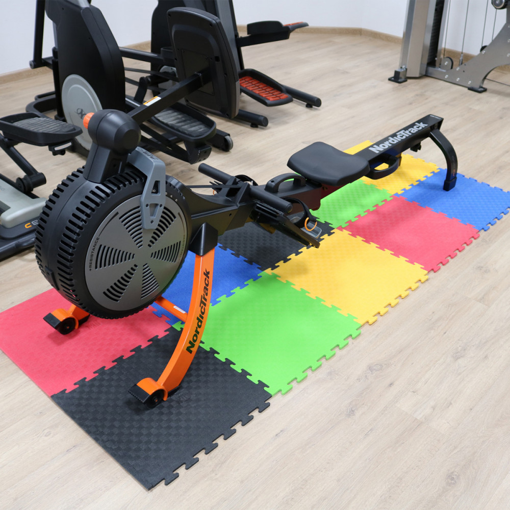 - Устойчивость к деформации: Материал практически не проминается под весом тяжелых беговых дорожек, силовых станций и стоек с блинами.