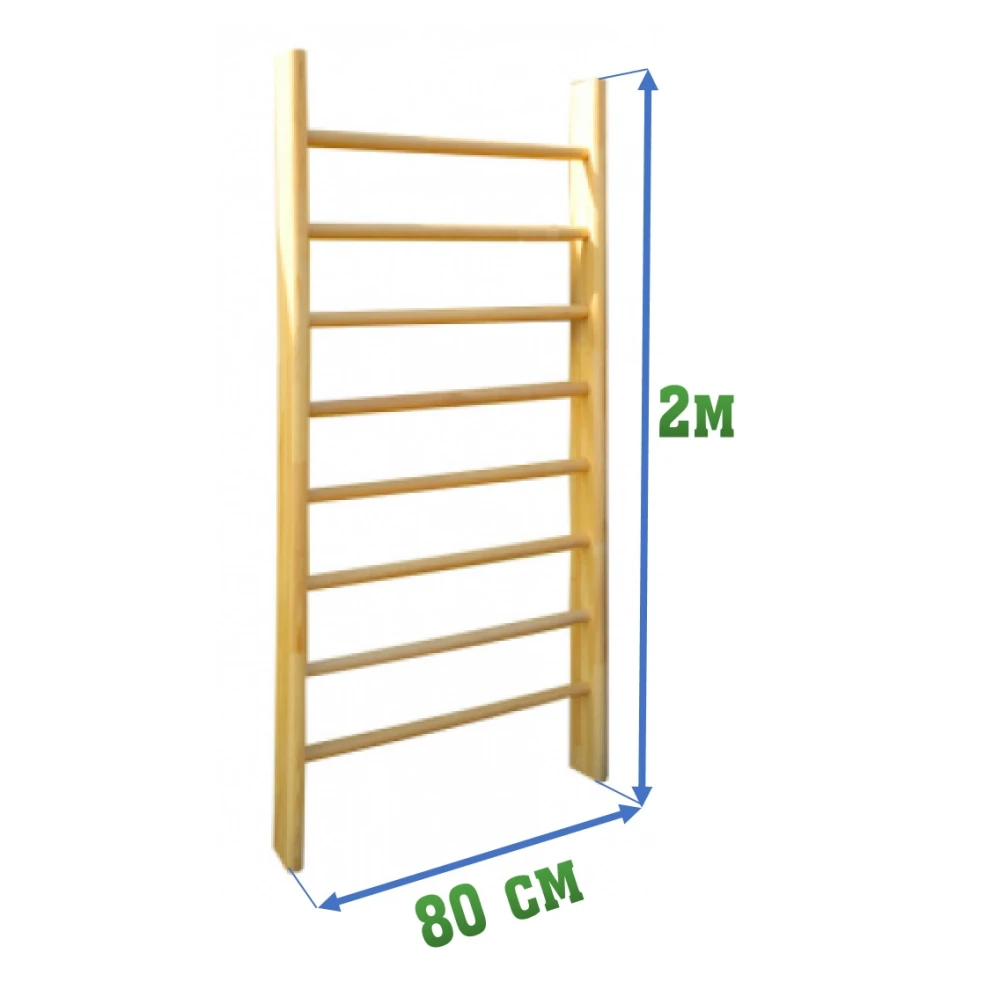 Гимнастическая стенка (шведская стенка) высотой 2,0 м и шириной 0,9 м, состоящая из 8 перекладин, покрытых лаком, предназначена для занятий физической культурой и гимнастикой.