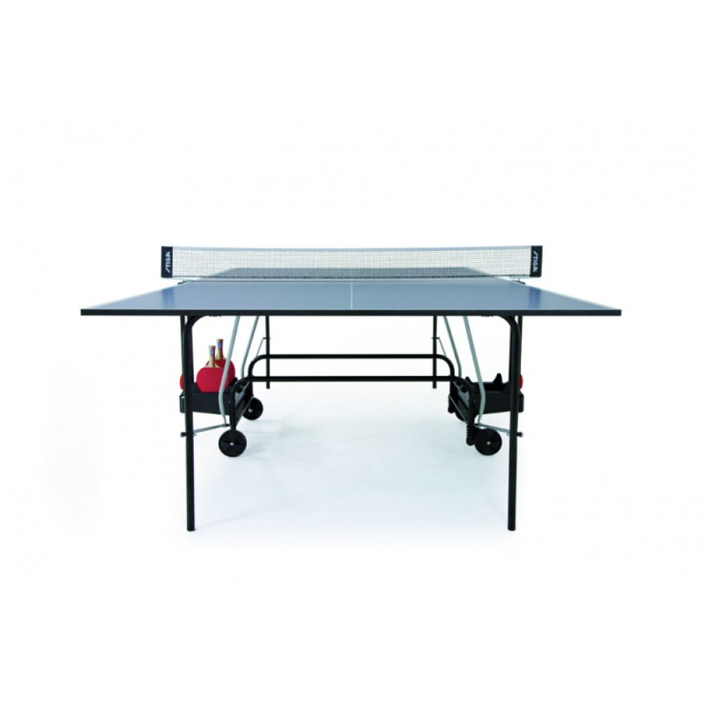 Данный стол является складным и может быть размещен в любом закрытом помещении. Оборудован дополнительными ячейками для удобного хранения инвентаря. Стол фирмы Stiga обладает инновационной системой складывания, позволяющую привести стал в рабочее состояние за пару минут. Отличный материал ДСП Е1 безопасен и используются для изготовления детской мебели.