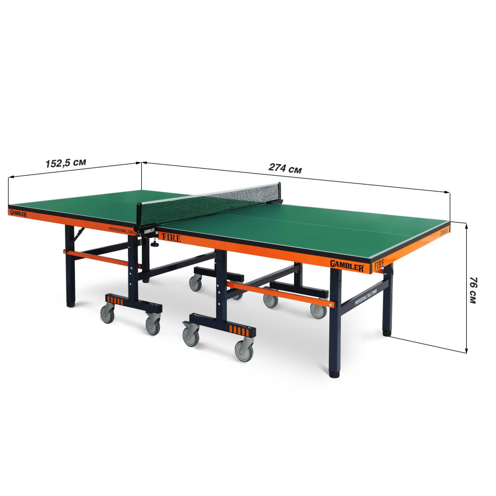 Теннисный стол FIRE сочетает в себе высокую безопасность, надежность и стабильность. Игровая панель повышенной толщины (30 мм), металлическая тележка с обрезиненными роликами в качестве базы. Размер соответствует международному стандарту.