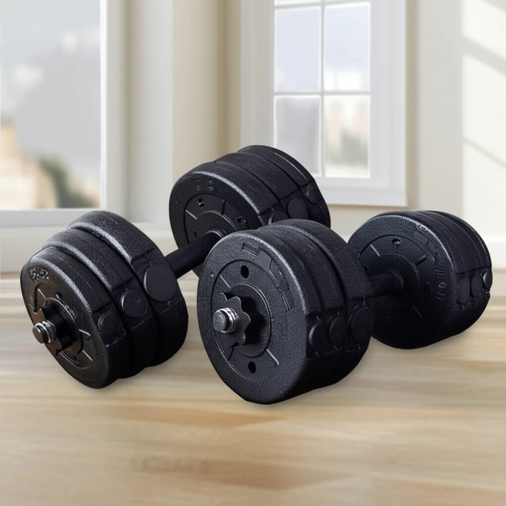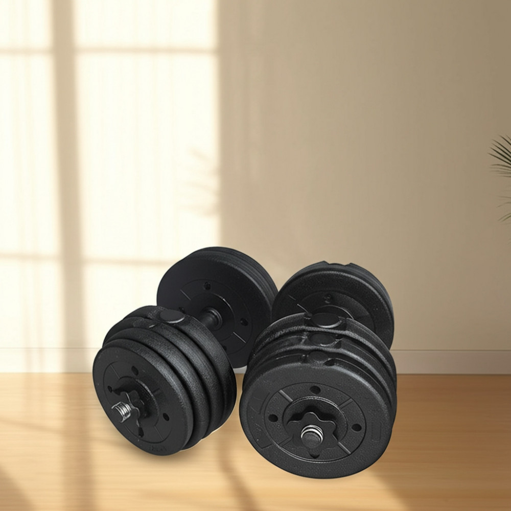 - Разборная конструкция позволяет легко менять вес и адаптировать гантели под уровень тренировки.