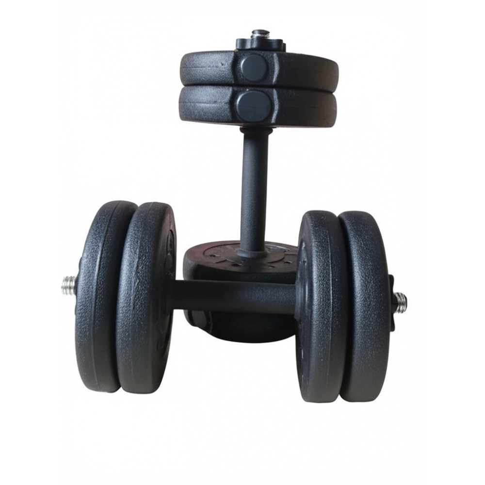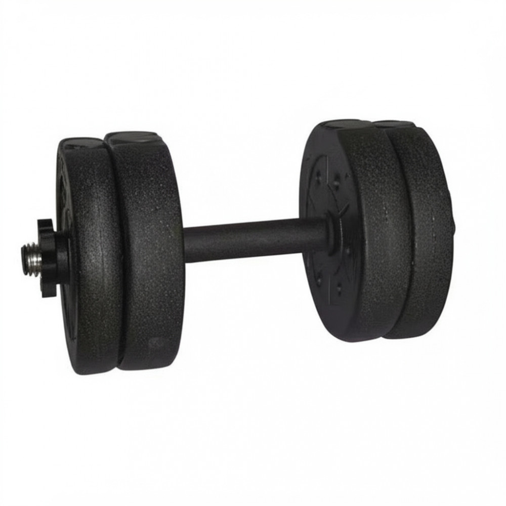 Гантельный набор разборный B31586, состоящий из двух гантелей по 5 кг каждая, с пластиковыми дисками и цементным наполнителем, идеально подходит для занятий спортом в домашних условиях.
