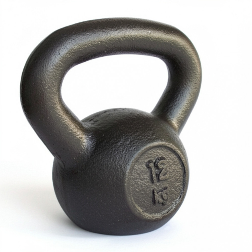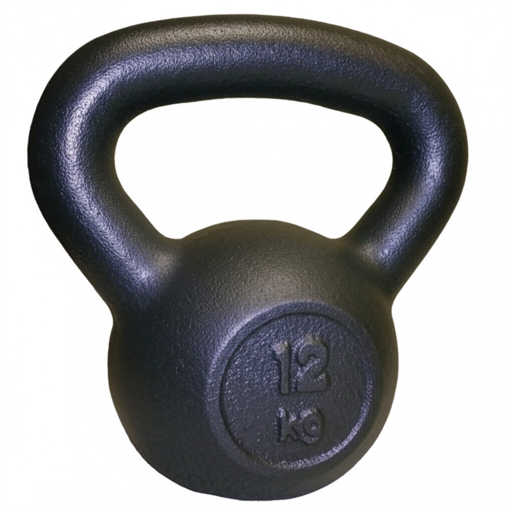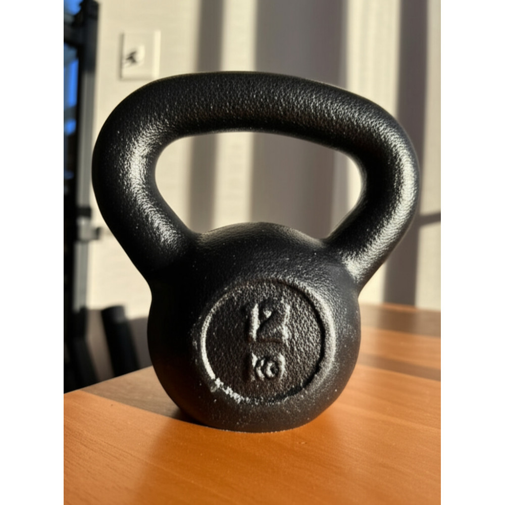 Гиря для кроссфит, чугунная, весом 12 кг, идеально подходит для различных тренировок и помогает развивать силу и выносливость.