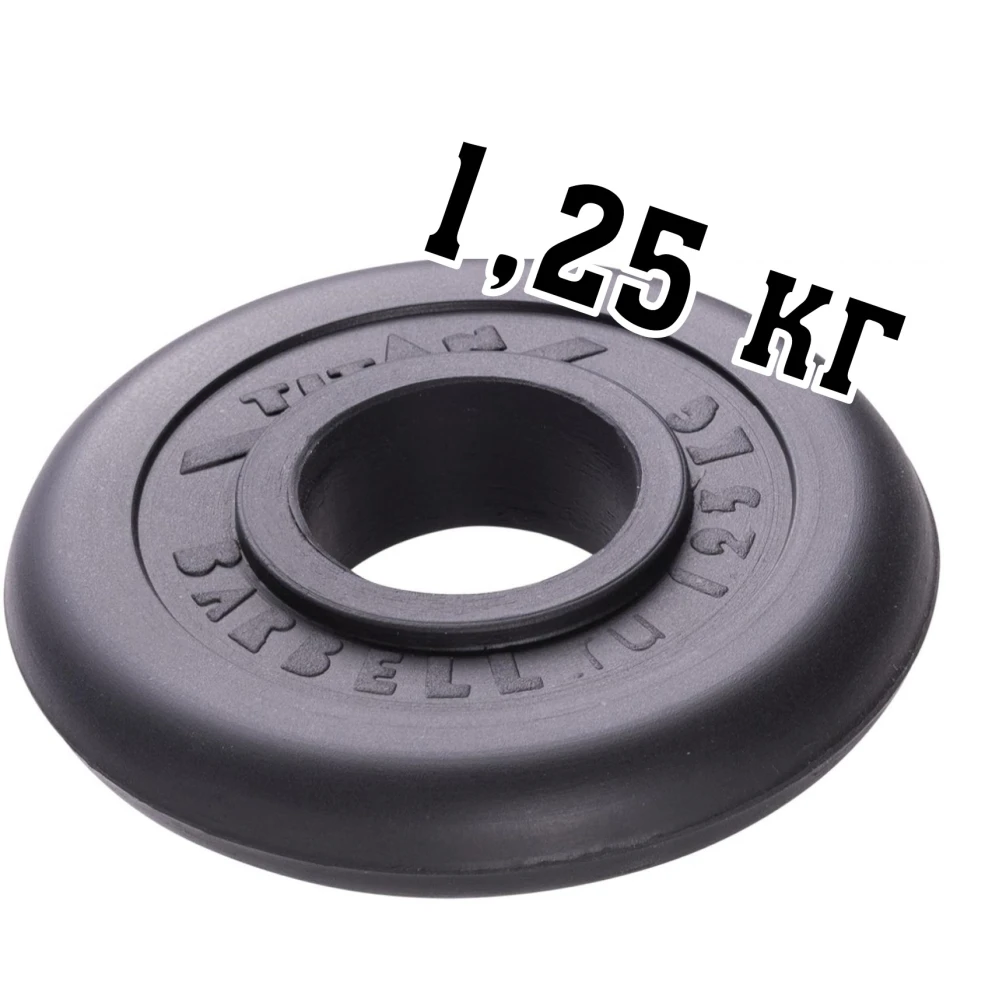 Диск обрезиненный TITAN, массой 1,25 кг и диаметром 51 мм, идеально подходит для использования в тренировках дома и в профессиональных спортзалах.