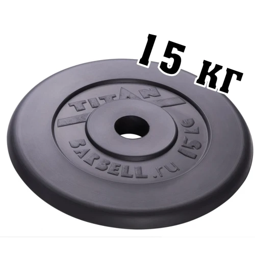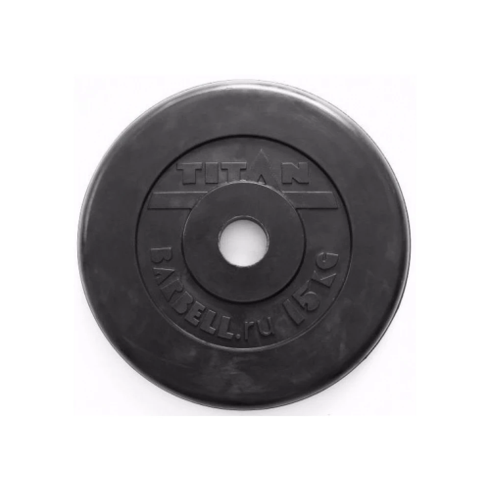 Диск обрезиненный для штанги TITAN весом 15 кг и диаметром 51 мм, предназначен для высокоэффективных тренировок.