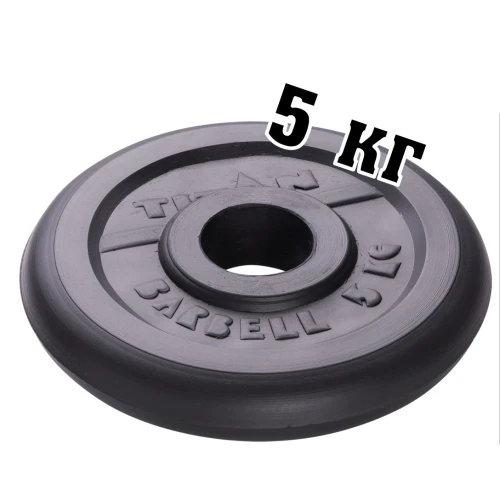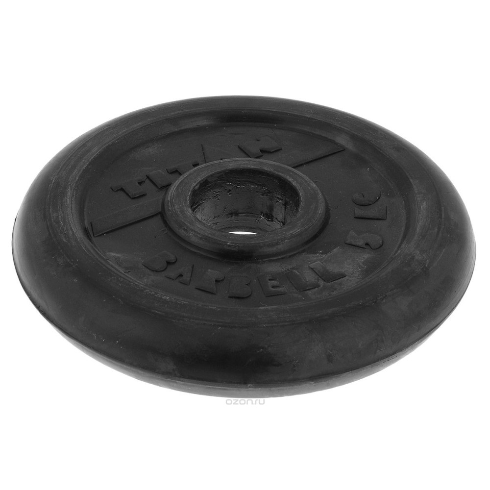 Диск обрезиненный весом 5 кг и диаметром 51 мм от бренда TITAN, идеален для силовых тренировок и подходит для использования в домашних условиях и спортзалах.