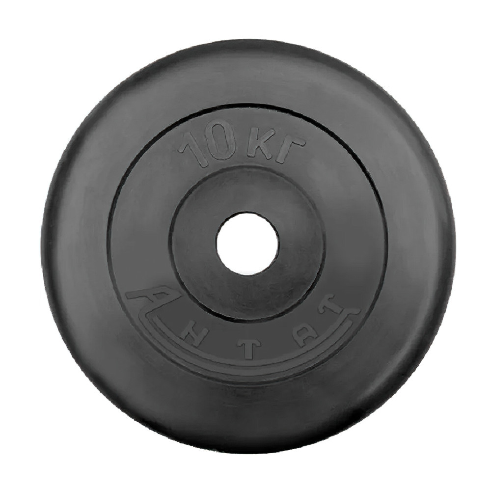 Обрезиненный диск "Антат" весом 10 кг с посадочным диаметром 31 мм, идеально подходит для силовых тренировок и занятий фитнесом.
