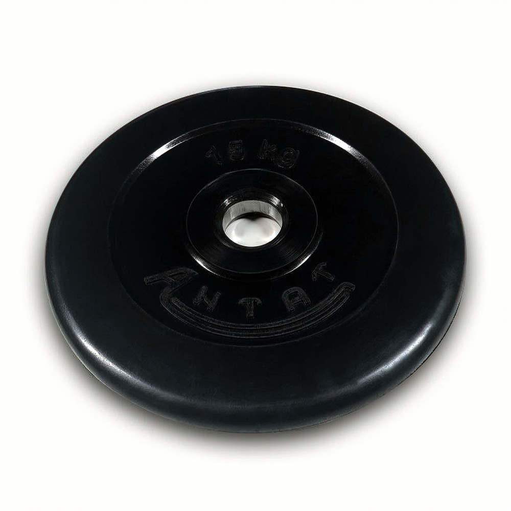 Обрезиненный диск Антат весом 15 кг и диаметром 31 мм, предназначенный для занятия спортом и силовых тренировок.