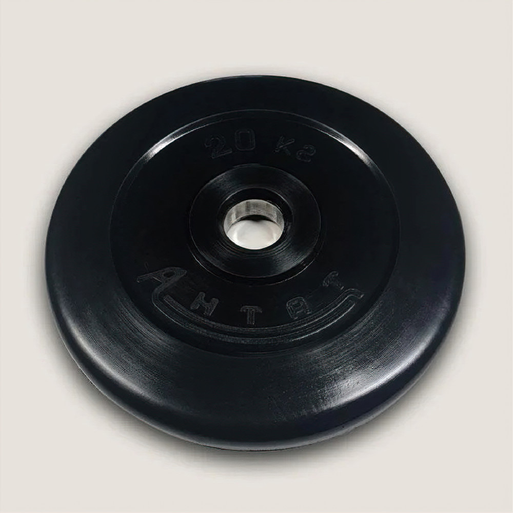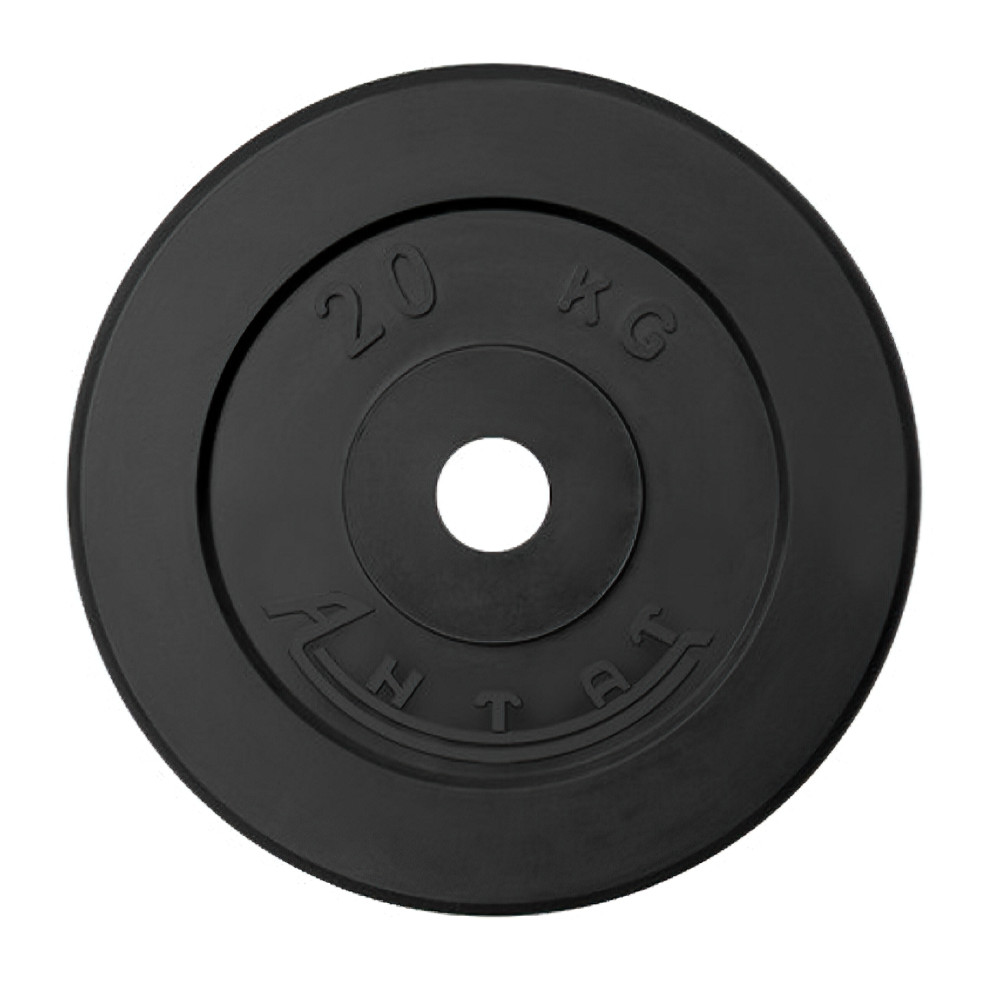 Обрезиненный диск Антат весом 20 кг с посадочным диаметром 31 мм, предназначенный для тренировок и силовых упражнений, обеспечивающий надежность и комфорт в использовании.