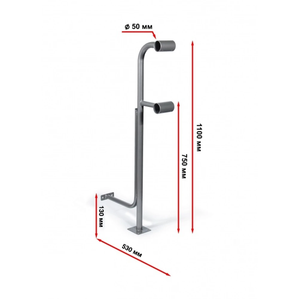 - Регулируемая высота: возможность установки поручней на двух уровнях (75 см и 110 см) позволяет адаптировать стойку под разные потребности пользователей.
