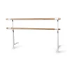Стойка хореографического станка 2-х уровневого №17 предназначена для профессиональных и любительских занятий танцами, с высотой поручней 75 и 110 см, выполненная из качественных материалов с цветовой гаммой черного, серебристого и белого.