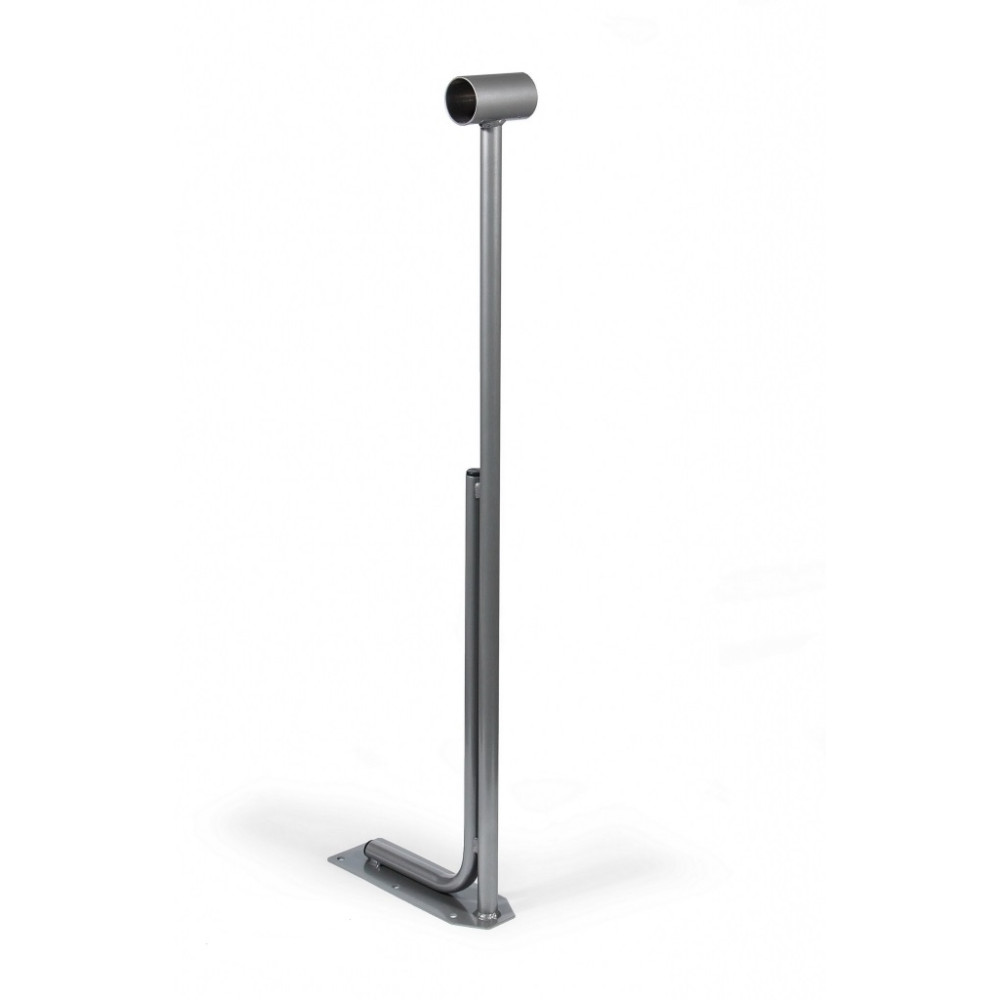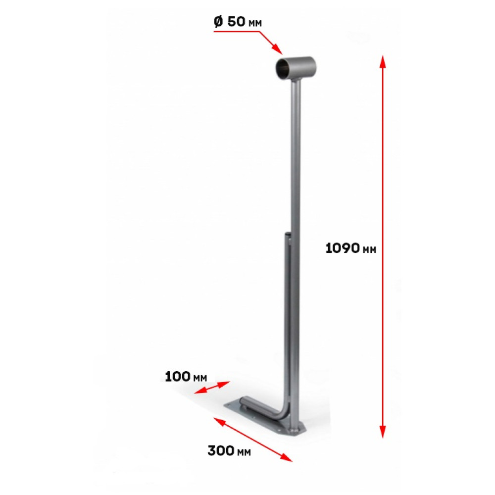 Данная стойка изготовлена из трубы диаметром 27 мм с толщиной стенки 3,3 мм, что обеспечивает ей высокую прочность и долговечность. Крепежная пластина выполнена из листовой стали толщиной 3 мм, что дополнительно усиливает конструкцию.