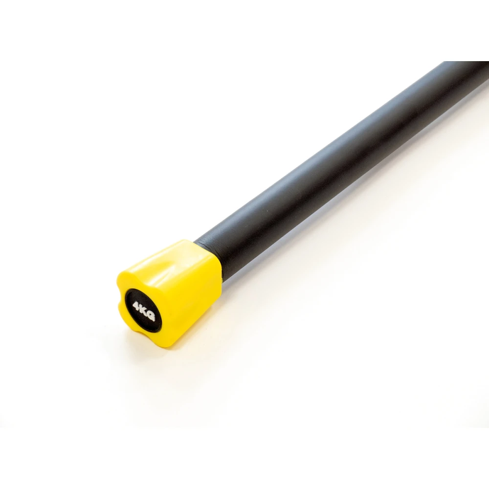 Бодибар обрезиненный 4 кг (желтый) - это универсальный фитнес-инструмент, предназначенный для разнообразных тренировок, выполненный из стали и синтетической пенки, с длиной 120 см и диаметром 32 мм.