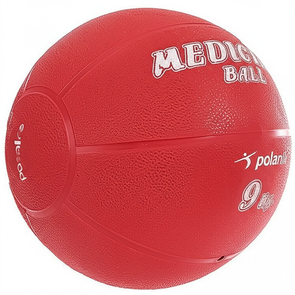 Медицинбол 9 кг от бренда Polanik, выполненный из резины, диаметром 20 см, идеален для реабилитационных и силовых тренировок.
